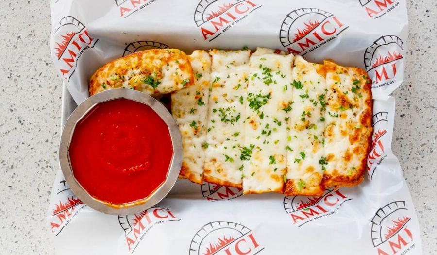 The menu is creative, delicious and affordable. Brick oven pizzas range from good ol' cheese to Truffle Mushroom to our favorite - "Sting Like a Bee" w/ pepperoni, ricotta and Mike's Hot Honey - a wonderful blend of sweet, creamy, salty and savory.  Sandwiches are prepared to order on homemade bread, and the salads are fresh and satisfying. Pasta dishes include Baked Ziti, Amici's Alfredo and Penne ala Vodka - or go hearty with Chicken Parm or a big plate of comfort food - Spaghetti & Meatballs. Save room for Cannoli, Tiramisu or Amici's homemade Blueberry Cheesecake or Key Lime Pie!