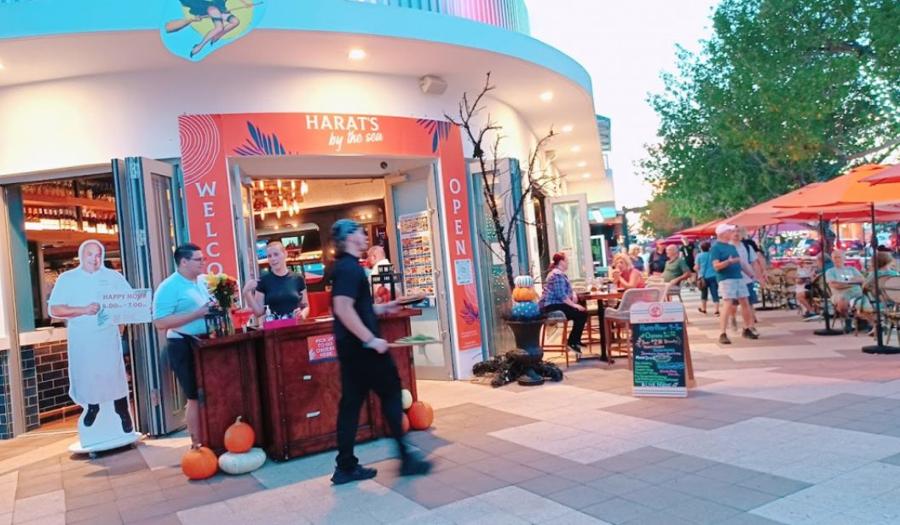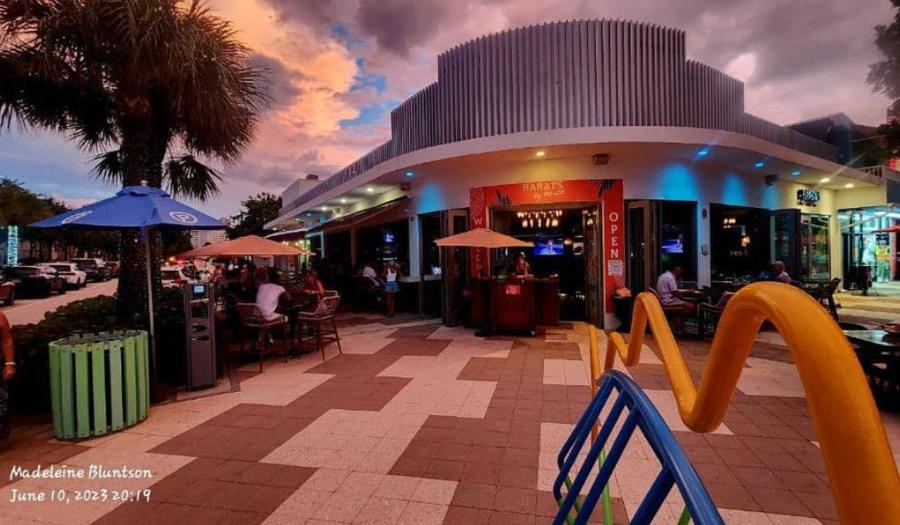 On the SW corner of Commercial & El Mar, Harat's by the Sea beckons you in with its delightful blend of live music, indoor/outdoor dining & bars, and a menu that's deliciously chef-driven.  Bartenders and servers go out of their way to make your visit extraordinary while General Manager, Heather, is always accessible and can be reached at 954-673-4812.