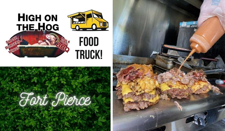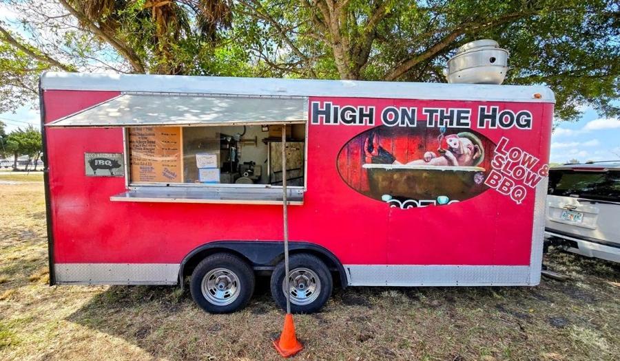 RIBS!  PULLED PORK!  SMASHBURGERS!  FRIED CHICKEN!  If you just started to drool, get in your car and head to Edwards Road between Sunrise and Oleander at the old Fort Pierce Central High School property.  You'll see a big red food truck in front of a big beautiful tree. If your palms are starting to sweat and you're dizzy with excitement, it's because you're about to be High on the Hog.