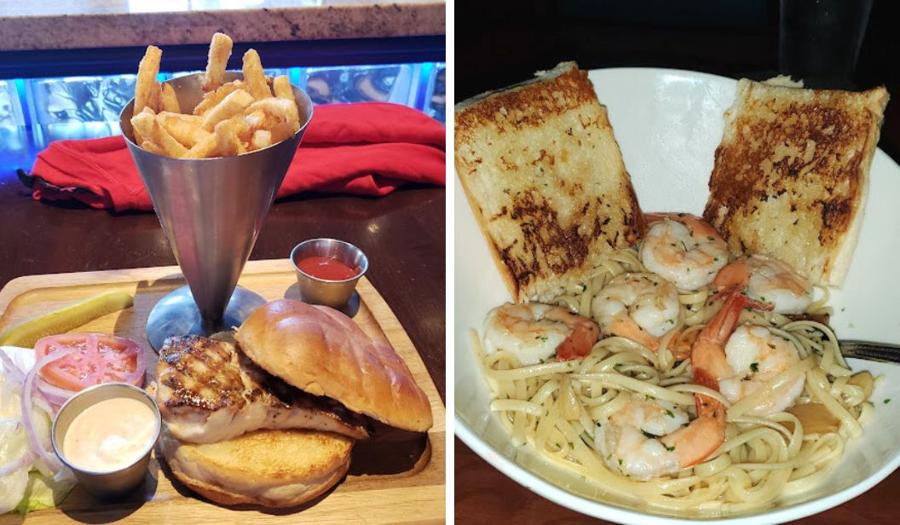 Start with a cup of traditional house made Clam Chowder or Lobster Bisque while you share a platter of Spicy Thai Calamari or local Smoked Fish Dip. And definitely order a basket of fresh baked garlic bread! The fresh Mahi Sandwich is legendary - served grilled or blackened, the Pecan Crusted Snapper is delicious and you can never go wrong with Twin Lobster Tails and a nice crisp bottle of Pinot Grigio.  Landlubbers, Seaside loves you too - and if you've got a craving for Baby Back Ribs, this is the place. Pasta dishes (try the Rasta Pasta!) and entrée salads round out the menu and make sure you leave room for dessert!